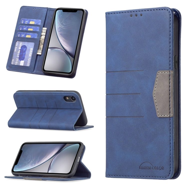 Estuche de Cuero Magnético Empalme para iPhone Xr (Azul)
