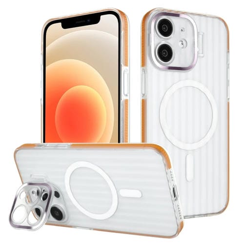Estuche Magnético para Teléfono Magsafe con Soporte para Lente de Borde de Color para iPhone 12 (Naranja)