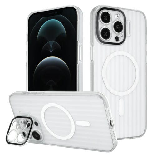 Estuche Magnético para Teléfono Magsafe con Soporte para Lente de Borde de Color para iPhone 12 Pro (Blanco)