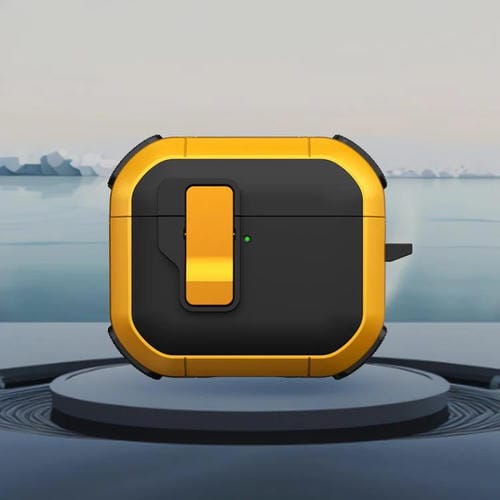 Estuche para Auriculares Inalámbricos Airpods 4 Starship con Interruptor Magnético (Negro y Amarillo)