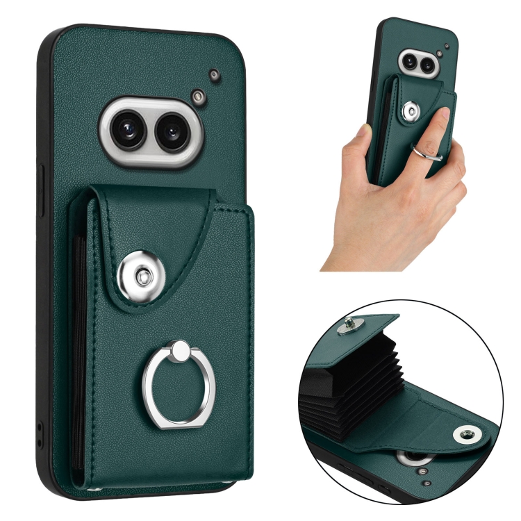 Estuche para Teléfono con Anillo y Tarjetero For Nothing Phone 2A (Verde)