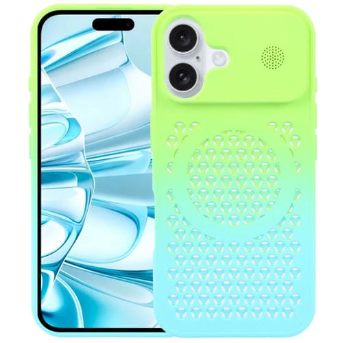 Estuche para Teléfono Aromaterapia iPhone 16 Plus Magsafe Forma Panal (Verde Azul)