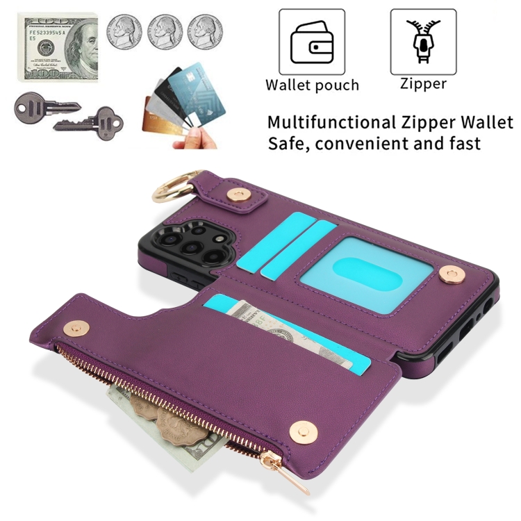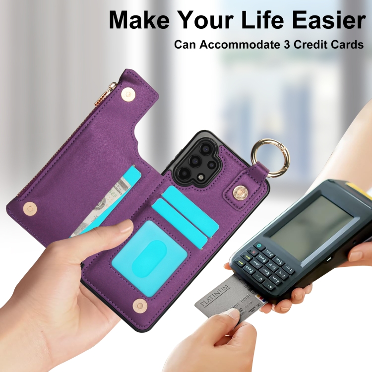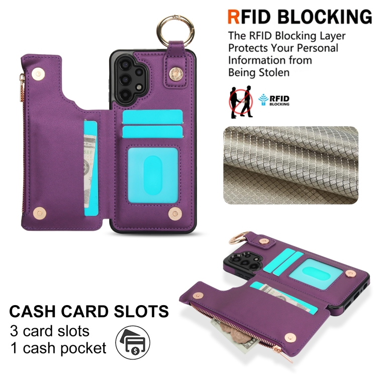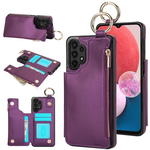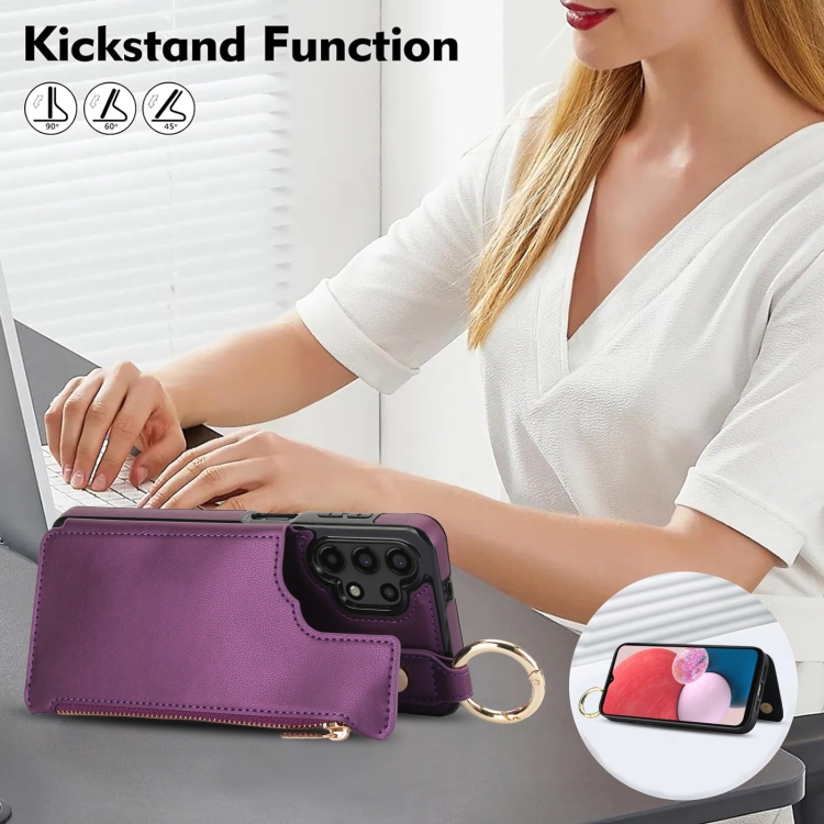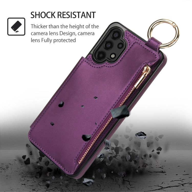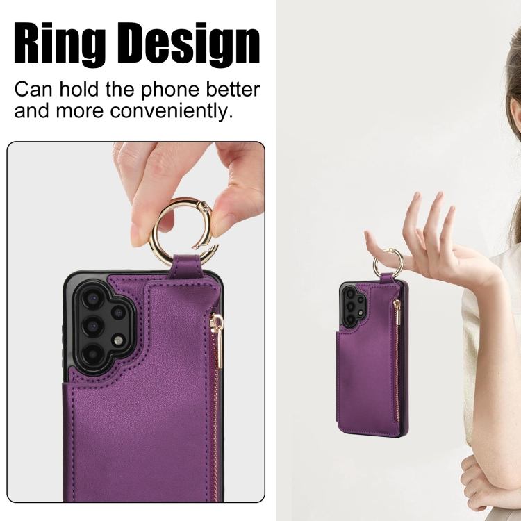 Estuche para Teléfono Samsung Galaxy A13 4G/5G Rfld con Cremallera y Anillo de Doble Hebilla Antirrobo (Morado Oscuro)