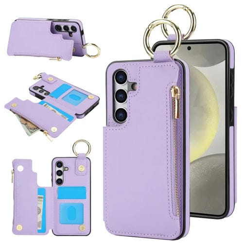 Estuche para Teléfono Samsung Galaxy S24+ 5G Rfld con Cremallera y Anillo de Doble Hebilla Antirrobo (Morado)