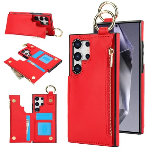 Estuche para Teléfono Samsung Galaxy S24 Ultra 5G Rfld con Cremallera y Anillo de Doble Hebilla Antirrobo (Rojo)