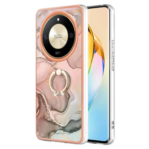 Estuche para Teléfono Honor X9B con IMD Doble Cara y Anillo Galvanoplastia Mármol (Oro Rosa)
