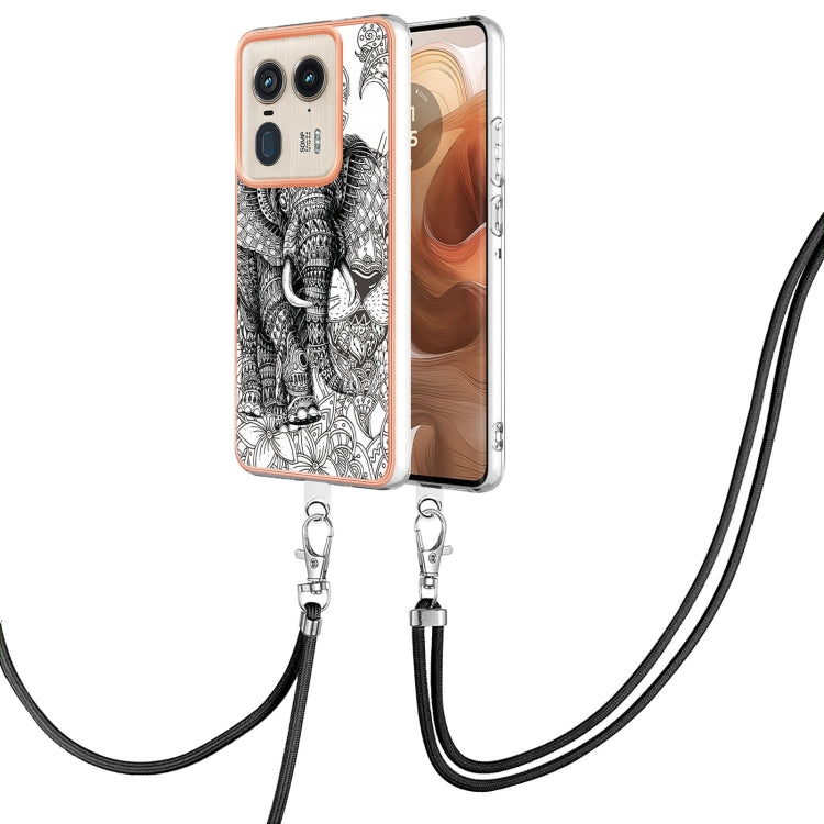 Estuche para Teléfono Motorola Edge 50 Ultra con IMD Doble Cara Galvanizada y Cordón (Elefante Tótem)