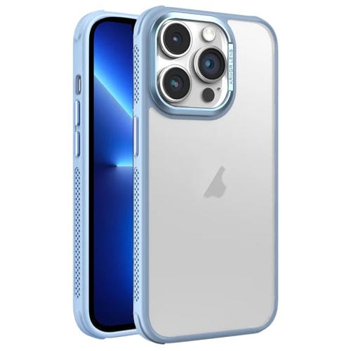 Estuche para Teléfono iPhone 13 Pro Marco de Lente Metal Esmerilado Sensación de Piel Enfriamiento Lateral (Azul Cielo)