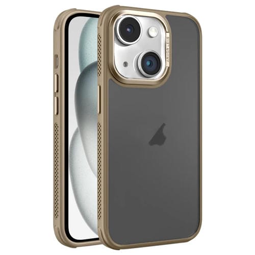 Estuche para Teléfono iPhone 15 Plus Marco de Lente Metal Esmerilado Sensación de Piel Enfriamiento Lateral (Dorado)