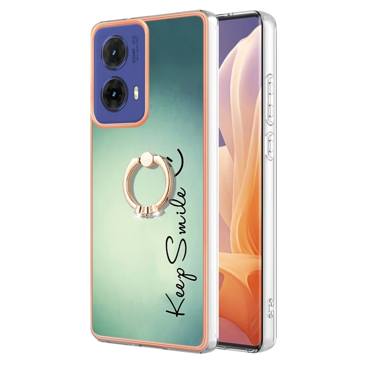Estuche para teléfono Motorola Moto G85 con soporte para anillo y galvanoplastia IMD doble cara (Sonrisa)