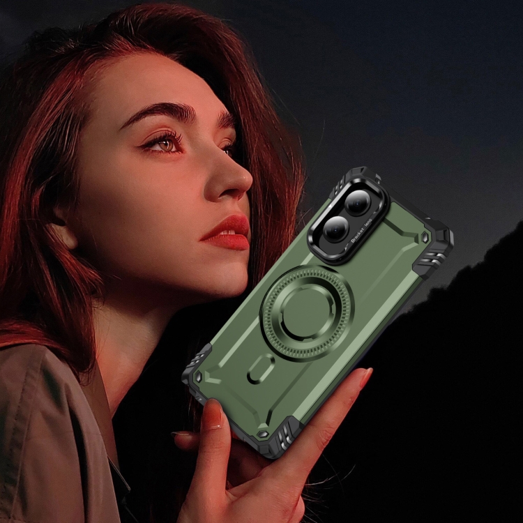 Estuche para Teléfono con Soporte para Lente Magsafe Motorola Moto G Stylus 5G (2024) (Verde Militar)