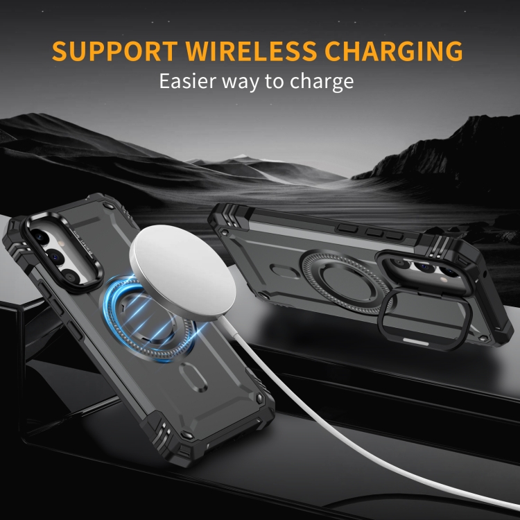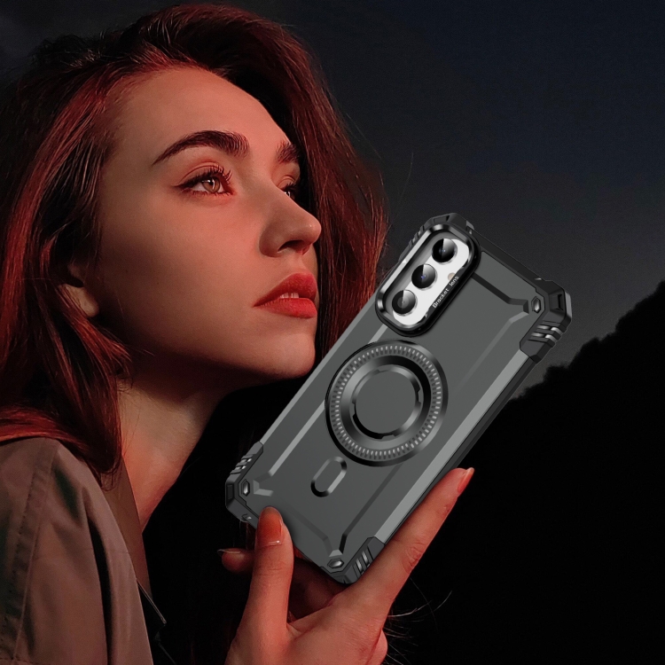 Estuche para Teléfono con Soporte para Lente Magsafe Samsung Galaxy A34 (Gris)