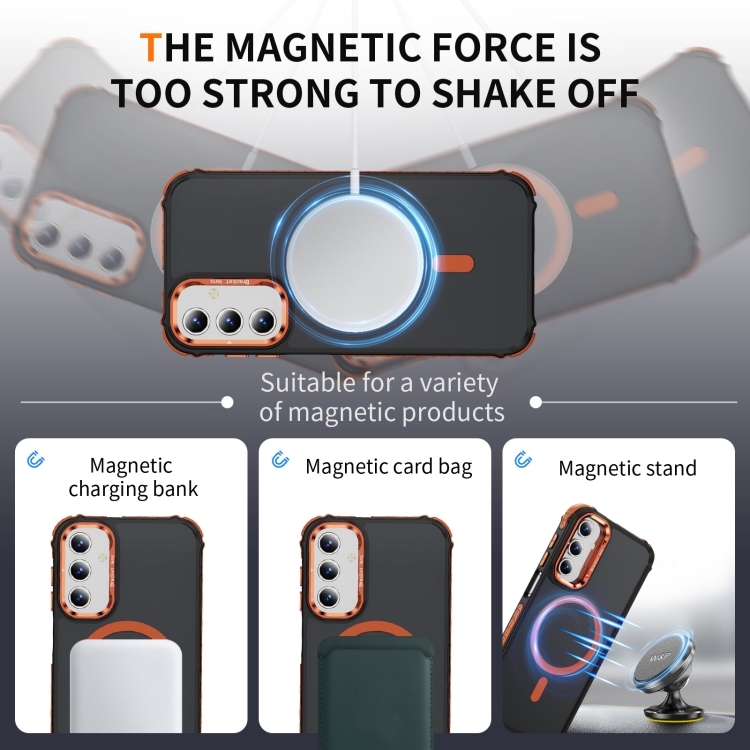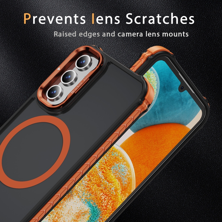 Estuche para Teléfono Samsung Galaxy A15 Soporte Lentes Magsafe Tacto de Piel (Naranja)