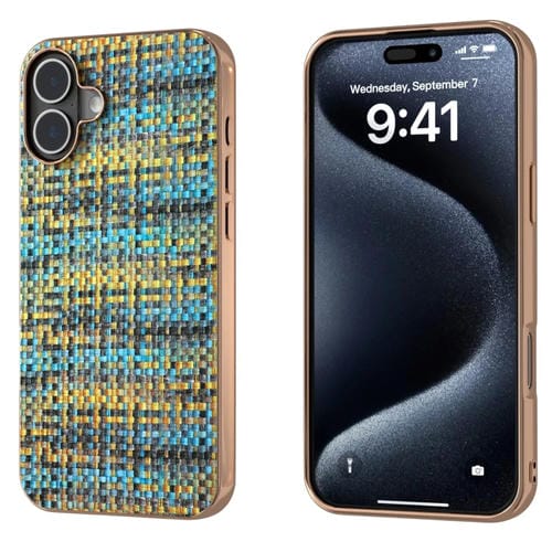 Estuche para Teléfono iPhone 16 Plus Textura de Pu Marco Galvanizado Enrejado (Dorado)
