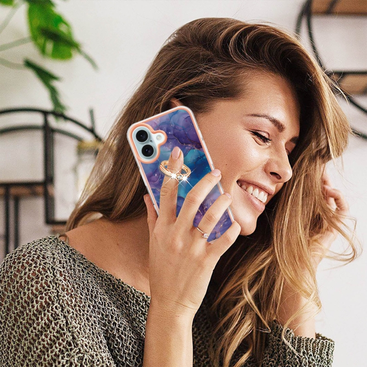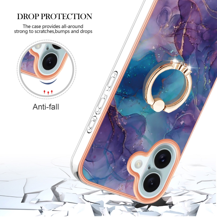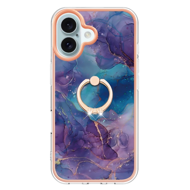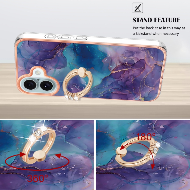 Estuche para Teléfono IMD Doble Cara Galvanoplastia Mármol iPhone 16 con Anillo (Púrpura)