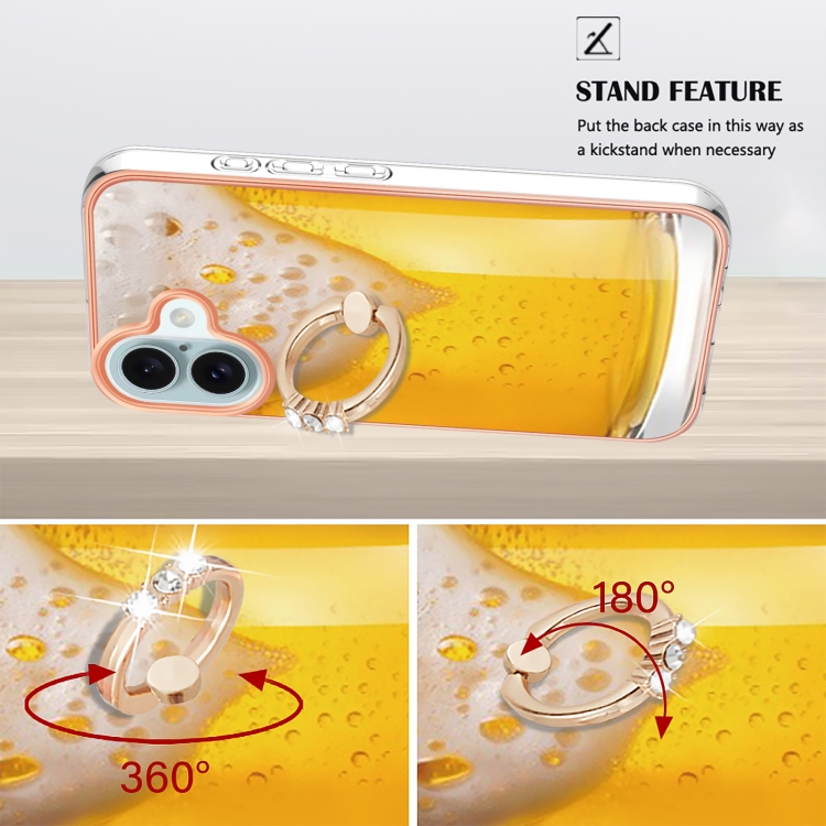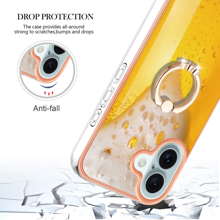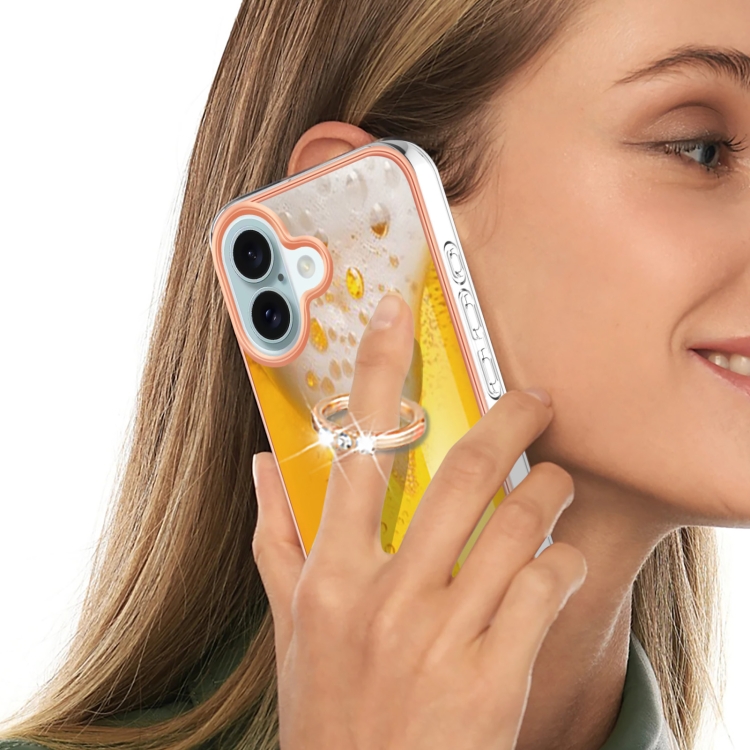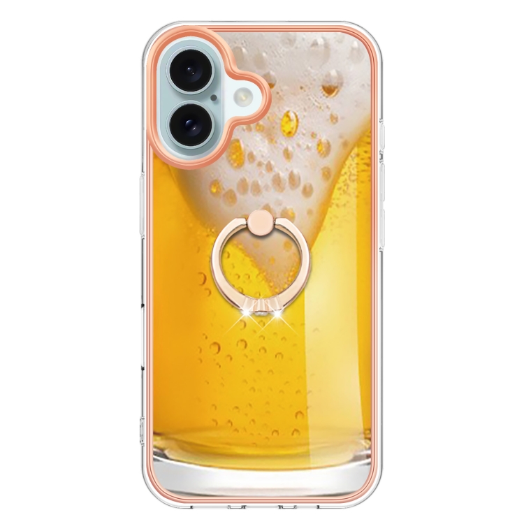 Estuche para Teléfono Imd Doble Cara con Galvanoplastia y Soporte para Anillo para iPhone 16 (Cerveza de Barril)