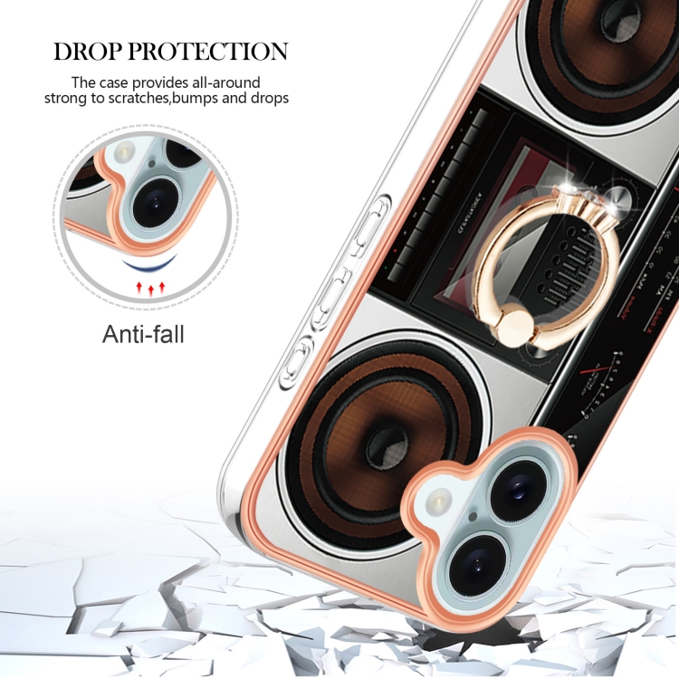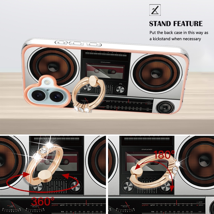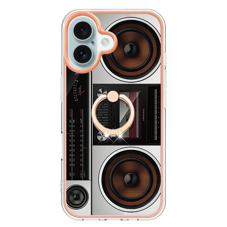 Estuche para Teléfono Imd Doble Cara con Galvanoplastia y Soporte para Anillo para iPhone 16 (Radio Retro)