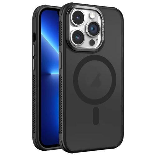 Estuche para Teléfono Magsafe iPhone 13 Pro Marco Metal Esmerilado Piel Enfriamiento Lateral (Negro)