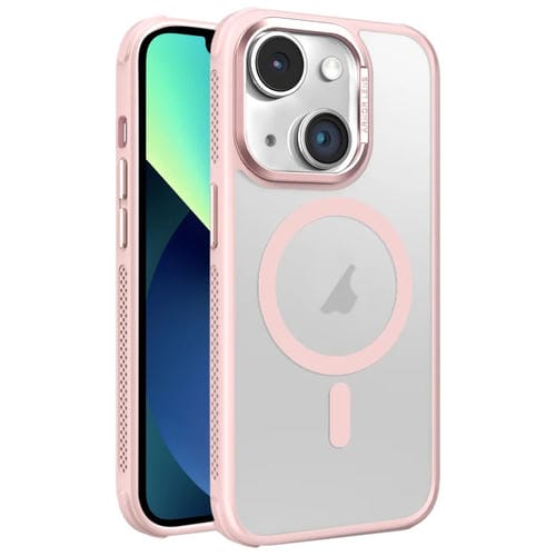 Estuche para Teléfono Magsafe con Marco de Lente de Metal Esmerilado y Sensación de Piel con Enfriamiento Lateral de Hardware para iPhone 13 (Rosa)