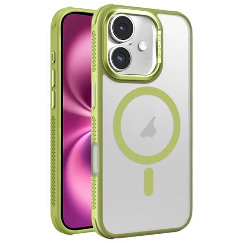 Estuche para Teléfono Magsafe iPhone 16 Plus Marco Metal Esmerilado Sensación Piel Enfriamiento Lateral (Verde)