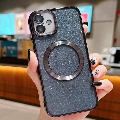 Estuche para Teléfono Magsafe con Purpurina Galvanizada para iPhone 16 Plus (Negro)