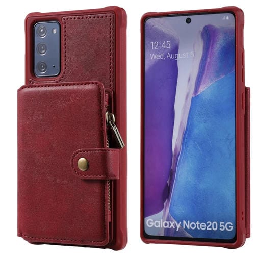 Estuche Protector Samsung Galaxy Note20 con Cremallera, Ranuras para Tarjetas, Soporte y Función Billetera (Rojo)