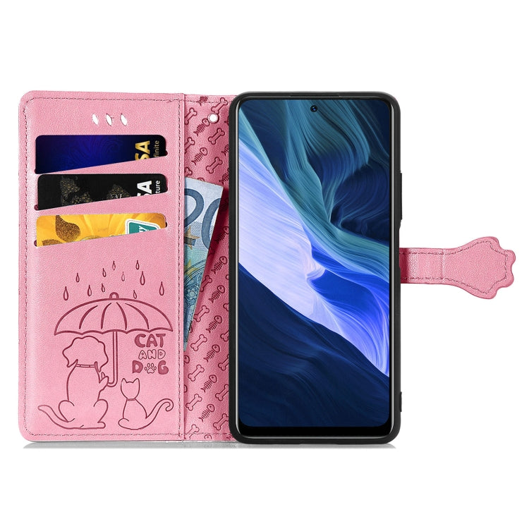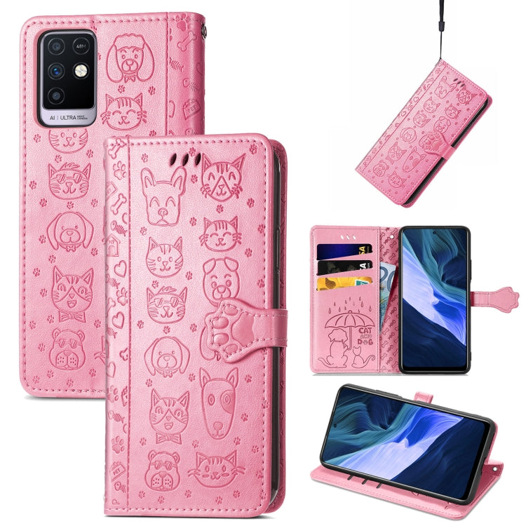 Funda Cuero Horizontal para Infinix Note 10 con Patrón Gato y Perro, Billetera y Cordón (Rosa)