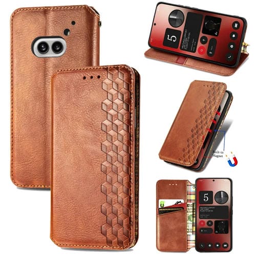 Estuche para Nothing Phone 2A de Cuero Magnético Prensado con Rejilla Cúbica (Marrón)