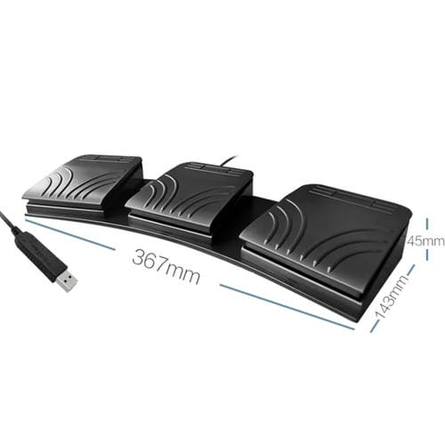 • Tres pedales con cinco funciones configurables: Mouse, Teclado, cadena, Juego y multimedia; Cable USB de 2 metros; Corriente de trabajo 12 mA; voltaje de trabajo 5V; dimensiones 36.7x14.3x4.5 cm; peso aproximado 429 g; interruptor con 3 modos de pedaleo