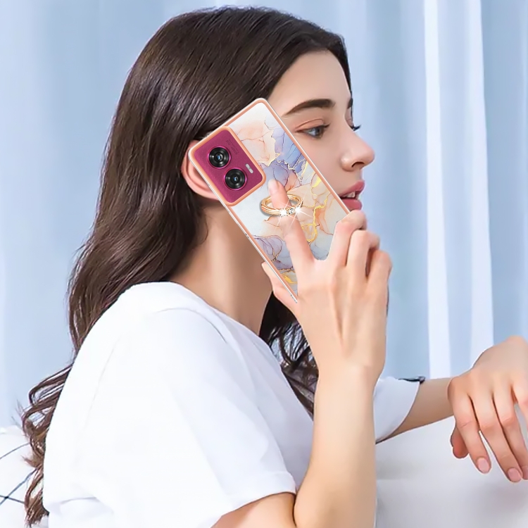 Funda TPU Motorola Edge 50 Fusion a Prueba de Golpes con Soporte y Patrón Mármol Blanco Vía Láctea