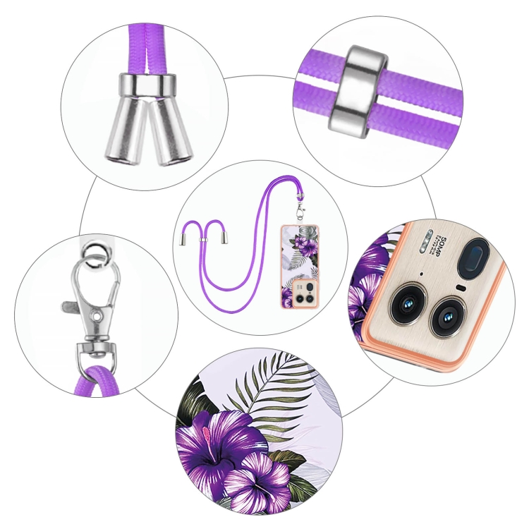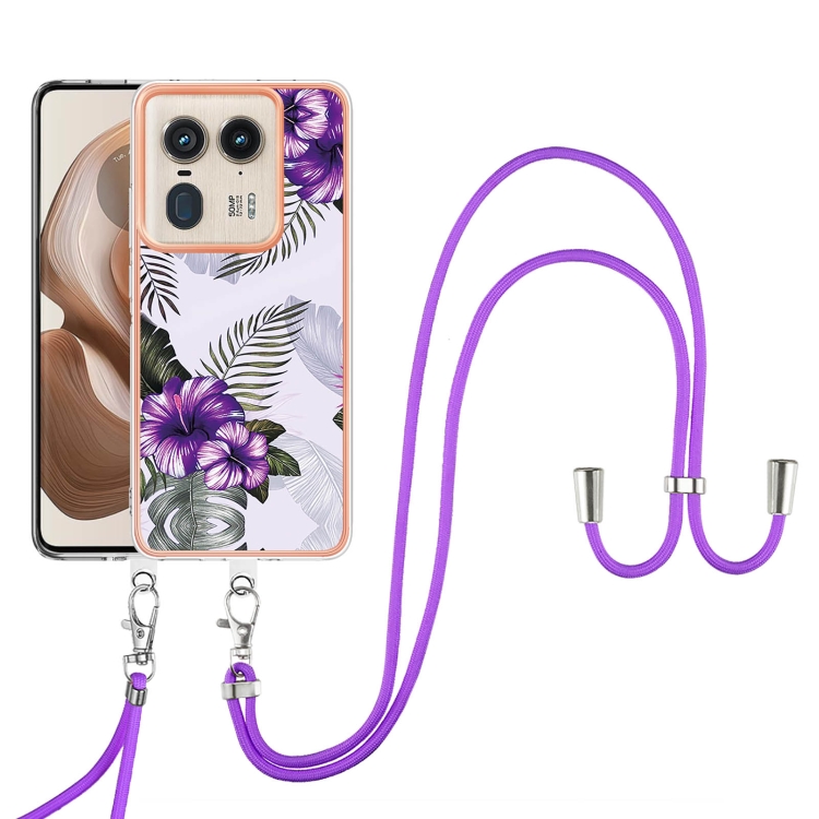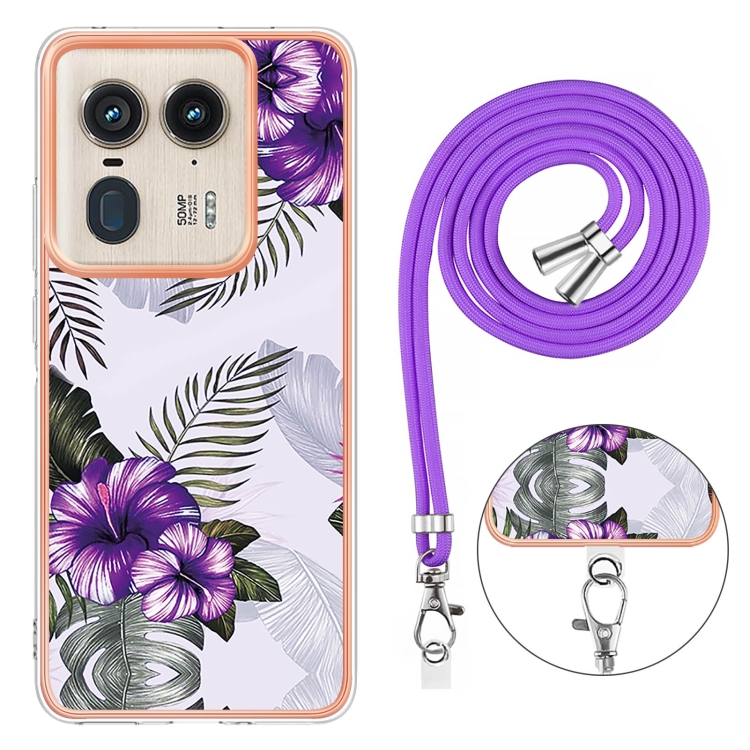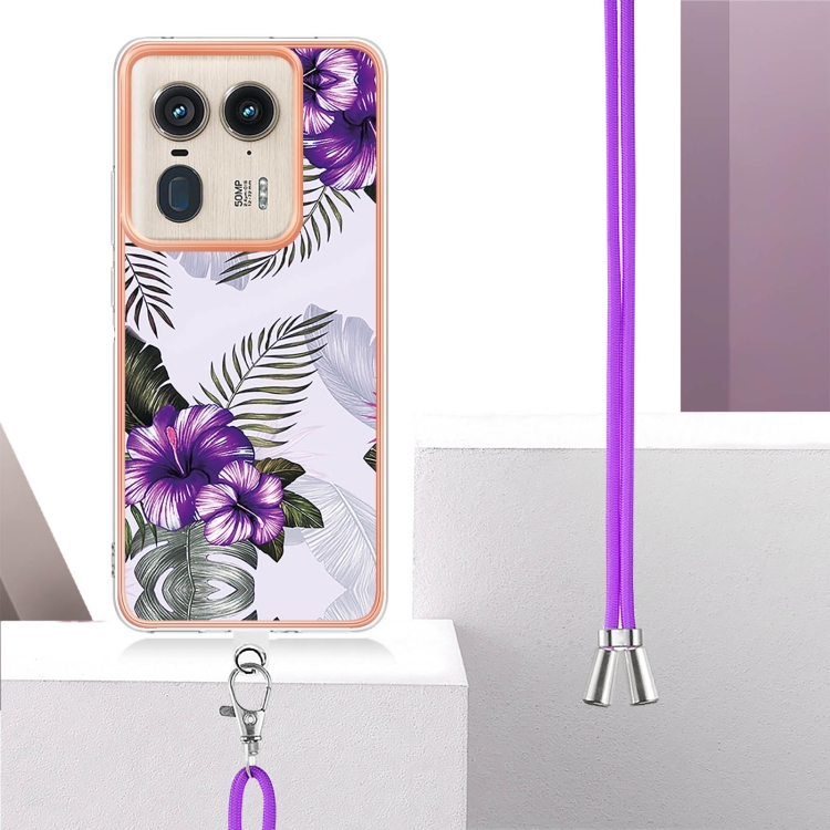 Funda TPU a Prueba de Golpes con Patrón Galvanoplastia Imd para Motorola Edge 50 Ultra con Cordón (Flor Morada)