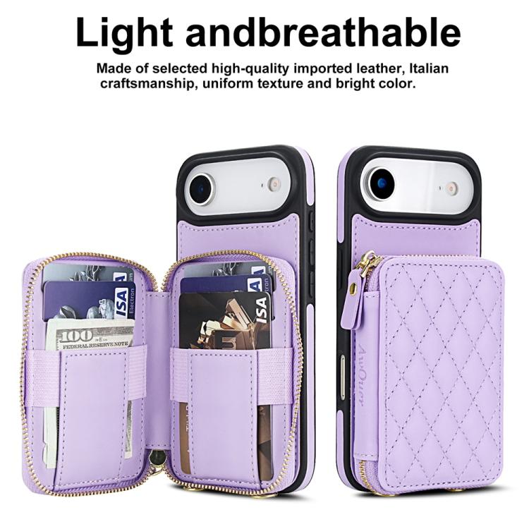 Funda AwQuer de piel con diseño de rombos y cremallera para iPhone Air (morado)