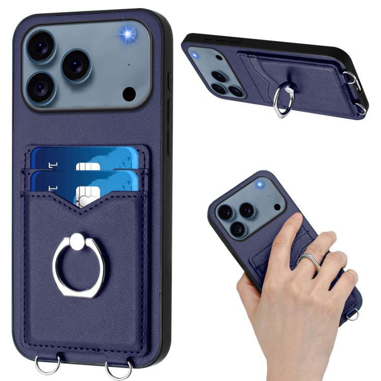 Funda con anilla para tarjetas y correa cruzada para iPhone 17 Pro Max R20 (azul)