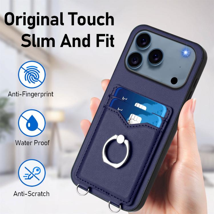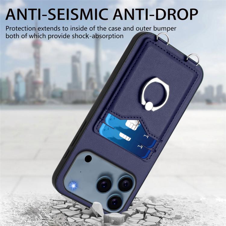 Funda con tarjetero y anillo para iPhone 17 Pro Max R20 (azul)