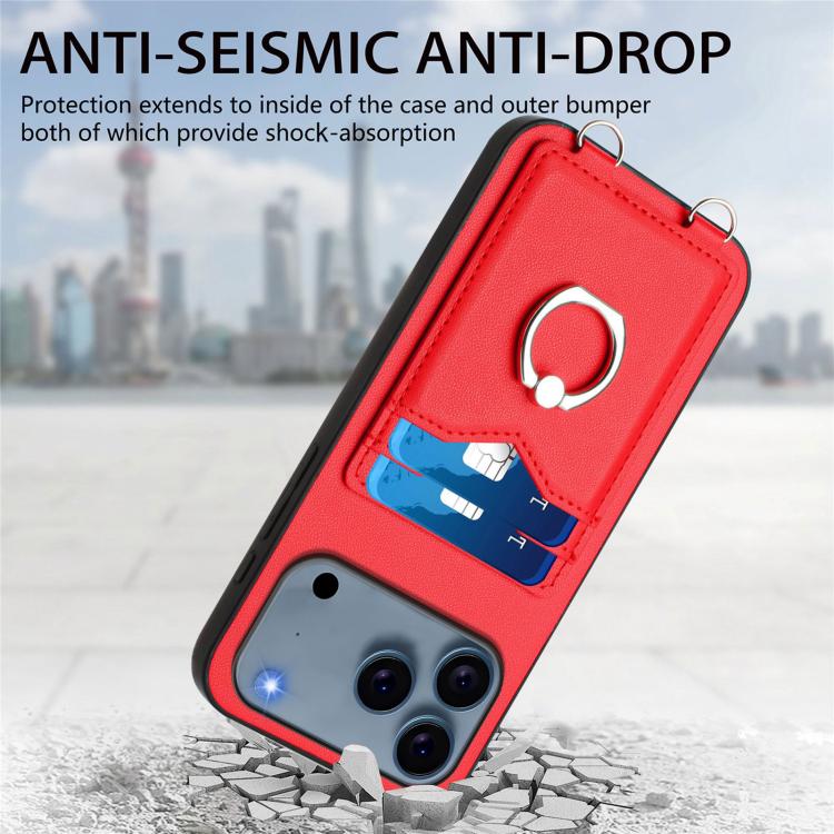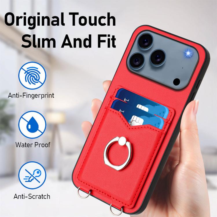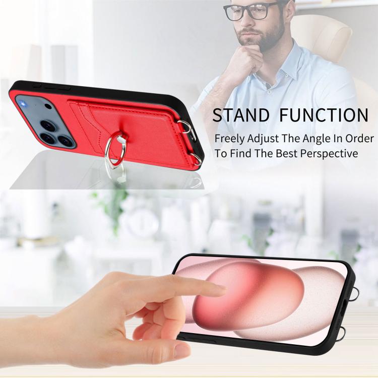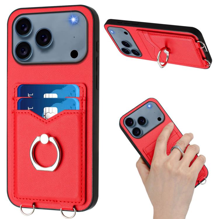 Funda cruzada con anilla y tarjetero para iPhone 17 Pro Max R20 (roja)