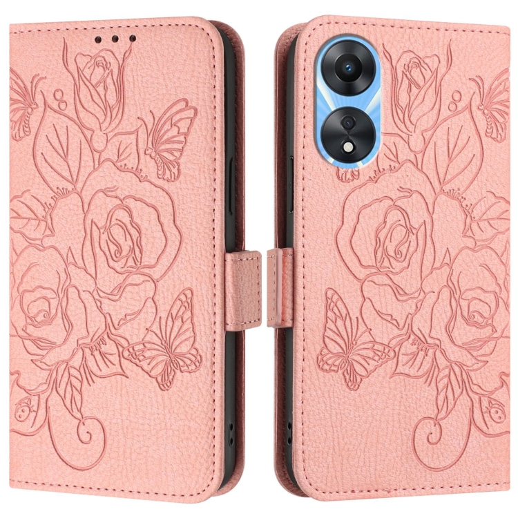 Funda de Cuero Antirrobo con Rfid En Relieve para Oppo A78 5G/A1X 5G (Rosa)
