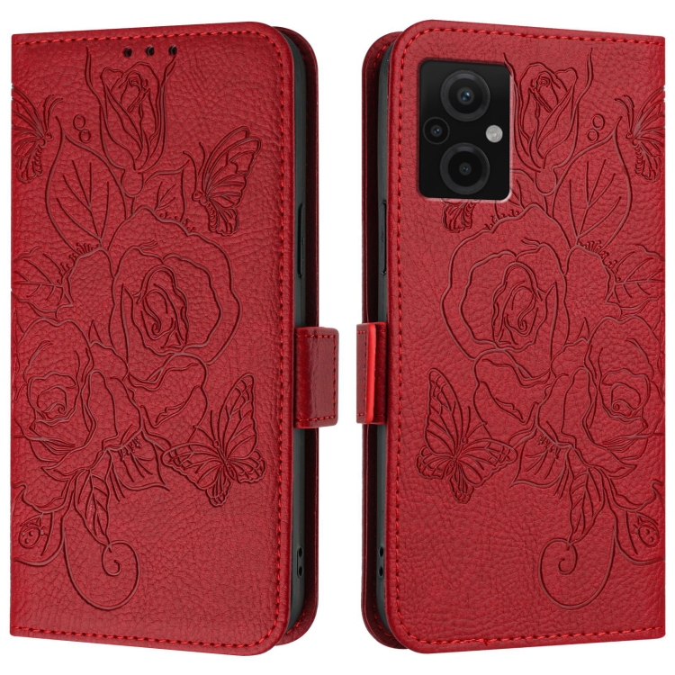 Funda de Cuero Antirrobo con Rfid En Relieve para Redmi 11 Prime 5G/Note 11R (Roja)