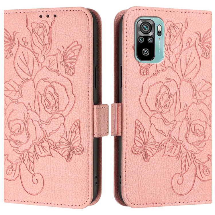 Funda de Cuero Antirrobo con Rfid En Relieve para Redmi Note 10 4G/Note 10S 4G (Rosa)
