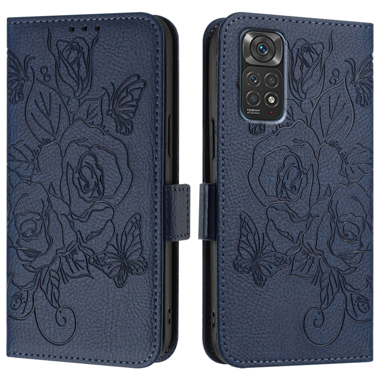 Funda de Cuero Antirrobo con Rfid En Relieve para Redmi Note 11S 5G/Xiaomi Poco M4 Pro 5G (Azul Oscuro)