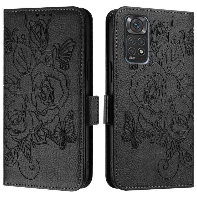 Funda de Cuero Antirrobo con Rfid En Relieve Rosa para Redmi Note 11S 5G/Xiaomi Poco M4 Pro 5G (Negra)