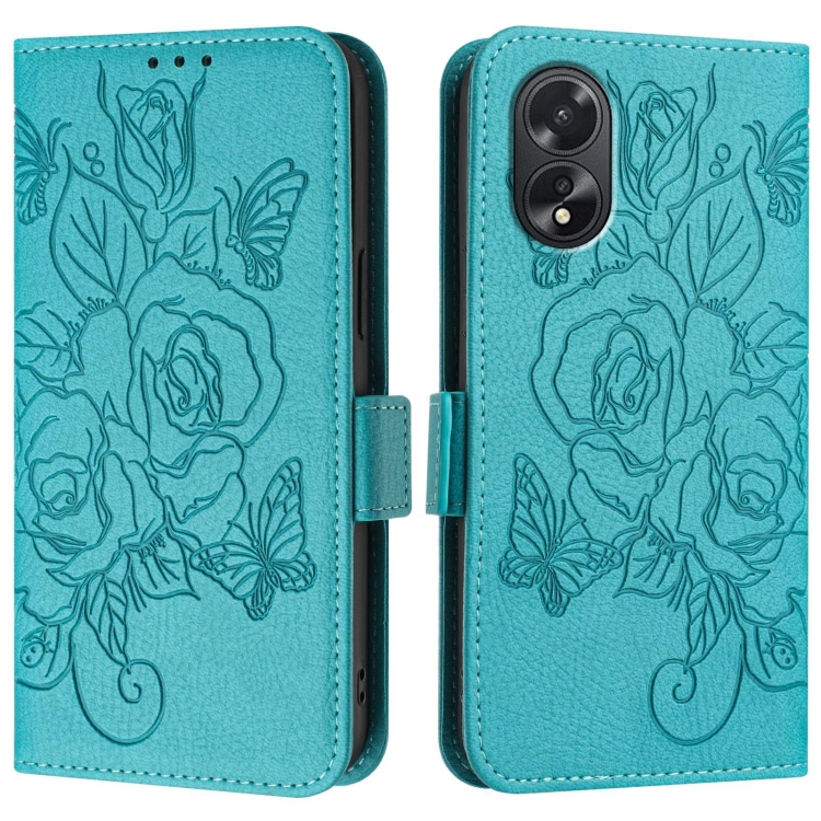Funda de Cuero Antirrobo con Rfid y Relieve Global para Oppo A38 4G/A18 4G (Azul Claro)
