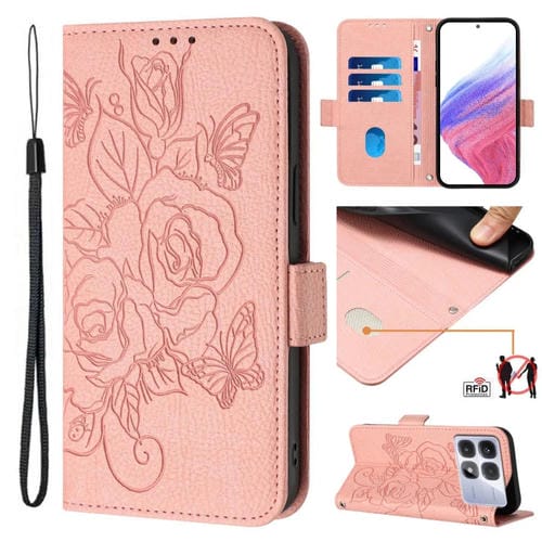 Funda de Cuero Antirrobo con Rfid y Relieve Global para Redmi K70 Ultra 5G (Rosa)