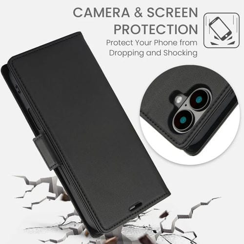 Funda de cuero antirrobo RFID con hebilla lateral para iPhone 17 (negra)