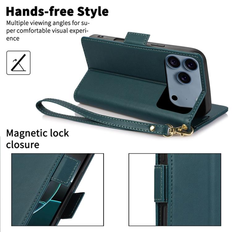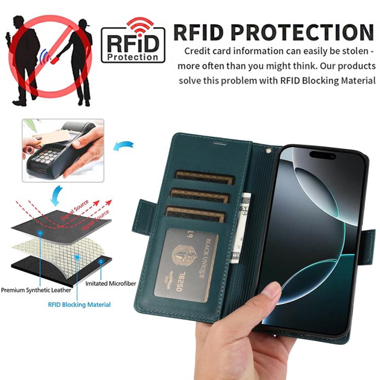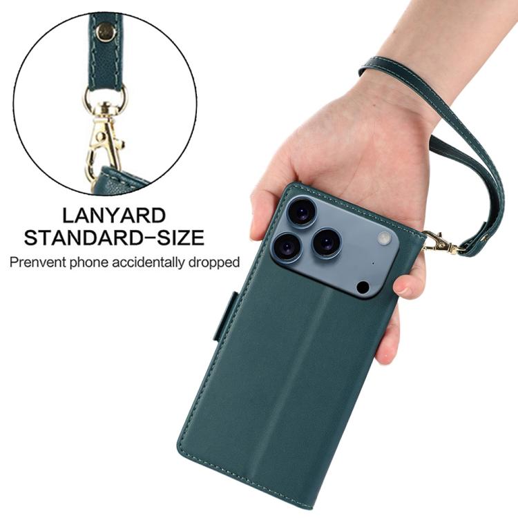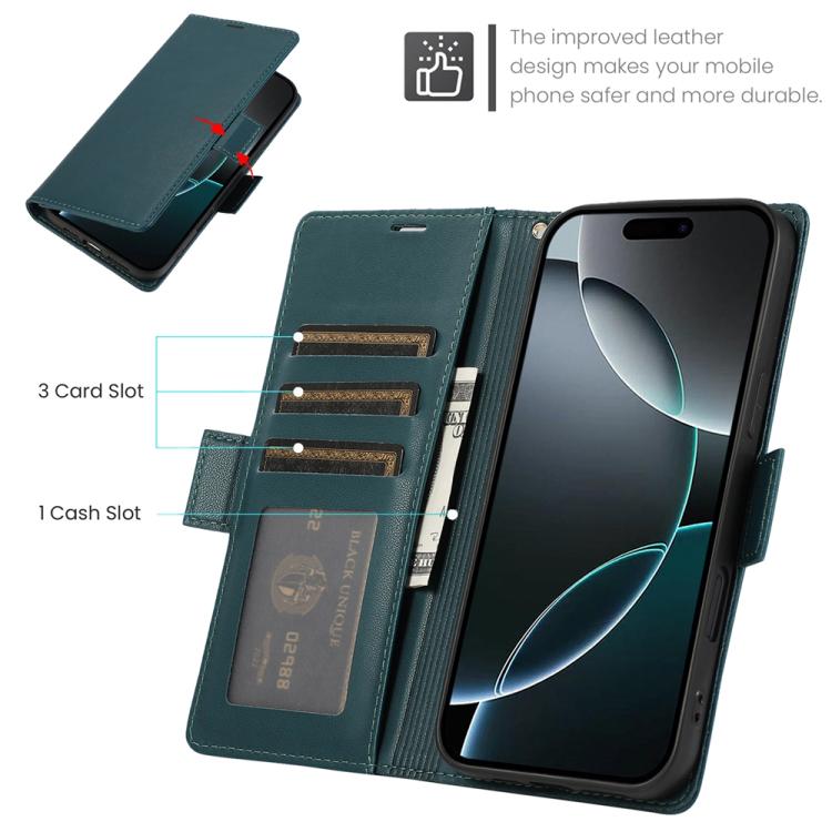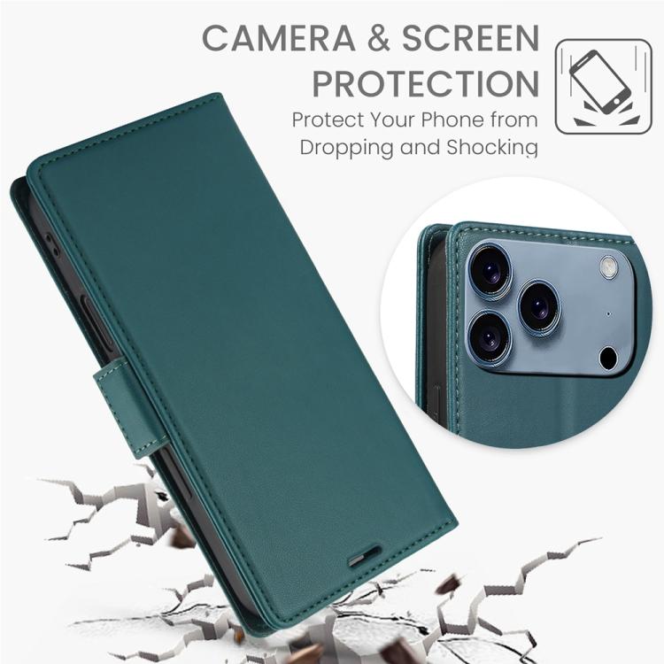 Funda de cuero antirrobo RFID con hebilla lateral para iPhone 17 Pro Max (verde)
