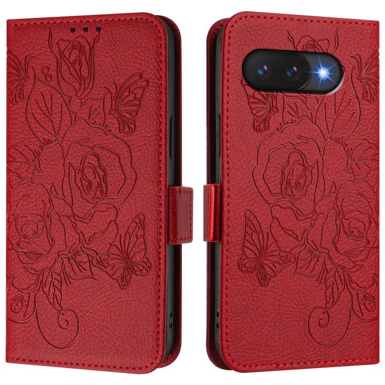 Funda de Cuero Antirrobo Rfid con Relieve para Google Pixel 9A (Rojo)