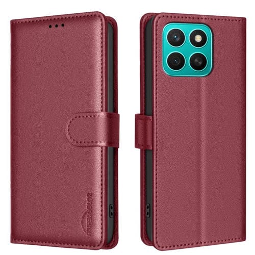 Funda de Cuero Antirrobo RFID para Teléfono Honor X8C 4G (Rojo) con Textura de Lichi