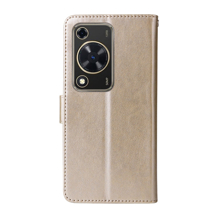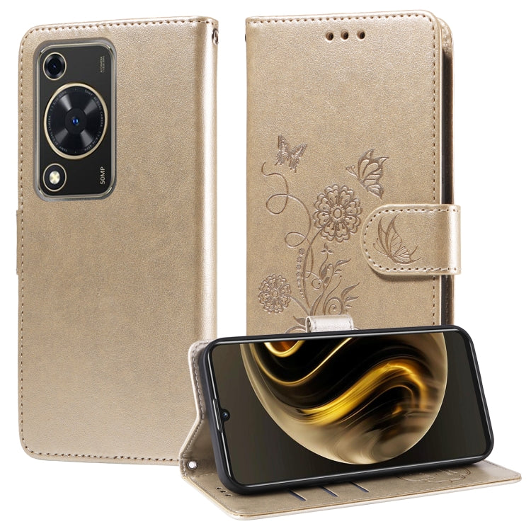 Funda de Cuero para Huawei Nova Y72 4G Enjoy con 70 Flores y Mariposas en Relieve (Dorada)