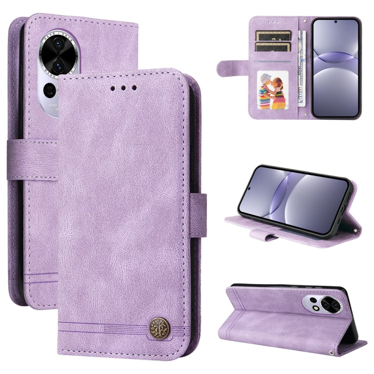 Funda de Cuero Huawei Nova 13/Nova 12 con Botones de Metal y Árbol de la Vida (Morado)