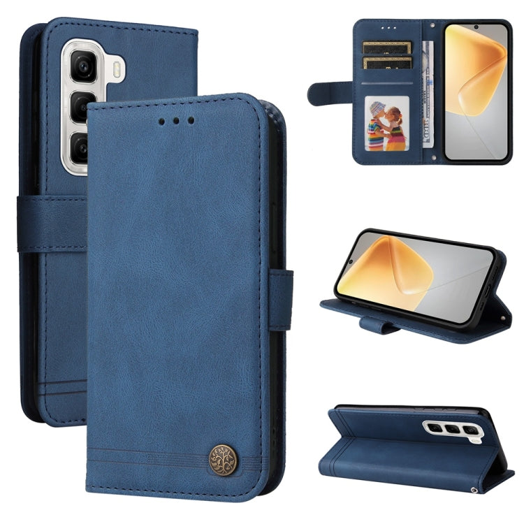 Funda de Cuero con Botones de Metal y Diseño Árbol de la Vida para Infinix Hot 50 4G (Azul)