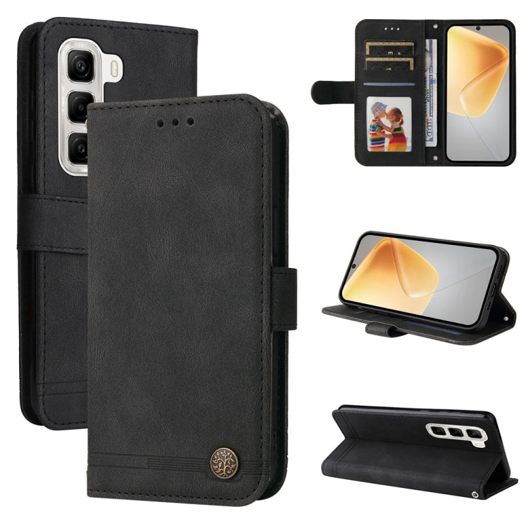 Funda de Cuero con Botones de Metal y Diseño Árbol de la Vida para Infinix Hot 50 4G (Negro)